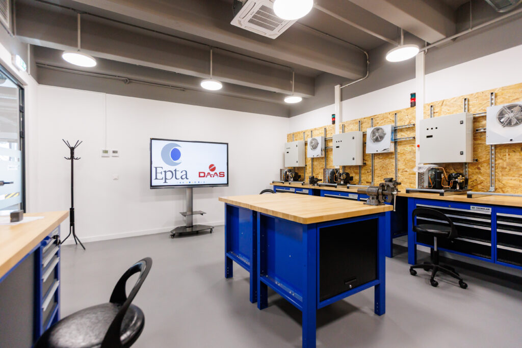 Cursurile sunt hands-on, bazate pe echipamente de ultimă generație: instalații frigorifice funcționale cu agenți naturali, panouri electrice, pompe de căldură și vitrine „best in class” dezvoltate de Epta. Infrastructura centrului include un showroom dedicat tehnologiei Epta, o sală de training pentru ucenici unde se învață bazele refrigerării și săli de studiu teoretic moderne și complet echipate. Tehnologiile emergente, precum realitatea virtuală și inteligența artificială, vor fi integrate treptat în sesiunile de formare, oferind un mediu educațional complet și relevant pentru cerințele actuale ale industriei.